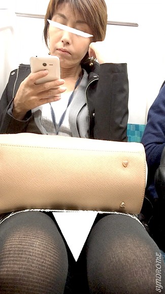(電車対面)(顔出し)スカート短め…黒のパンストに包まれた…きゅっと引き締まったあんよを緩めちゃう…熟なOL奥さまにフォーカス…