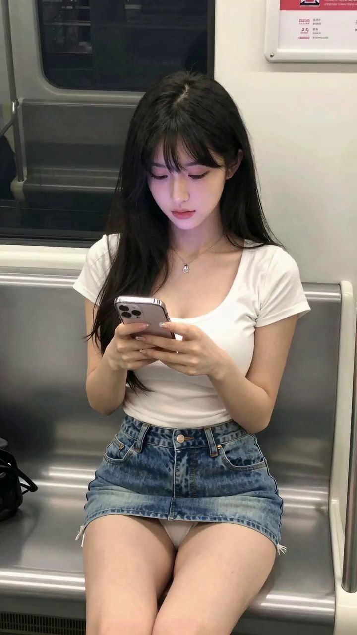 【目を惹く瞬間】デニムミニスカートJDの対面パンチラ動画