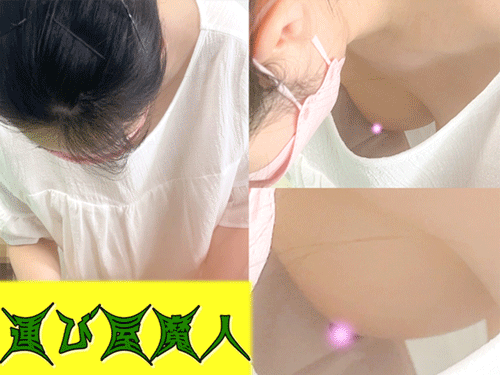 黒髪清楚な美人客の美巨乳丸見え/緩んだ胸元ズームで乳首まで見えました【胸チラ/パンチラ】